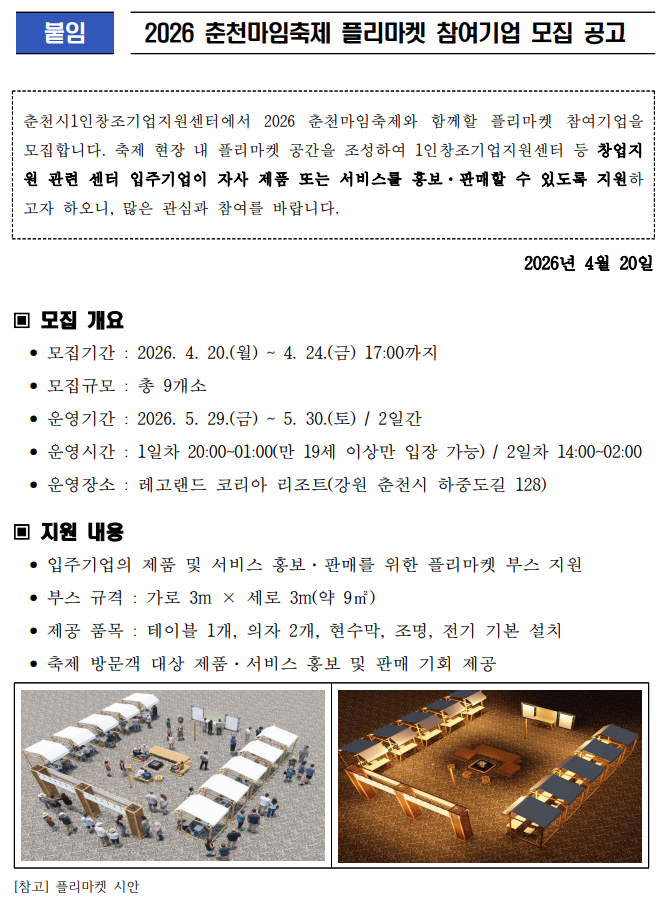 공고 2026 춘천 마임축제 플리마켓 참여기업 모집공고_춘천시1인창조기업지원센터.pdf